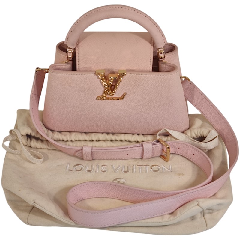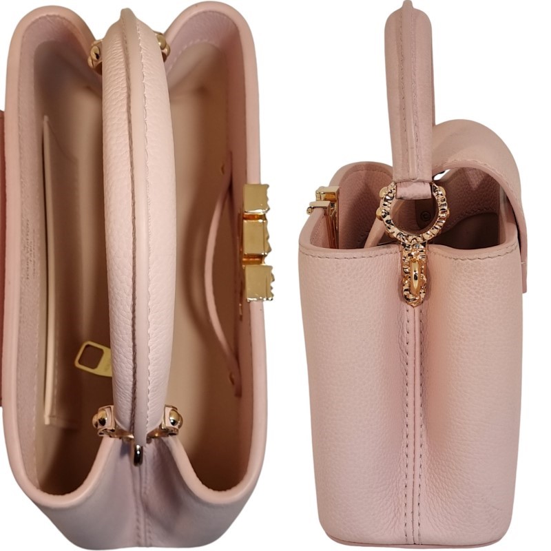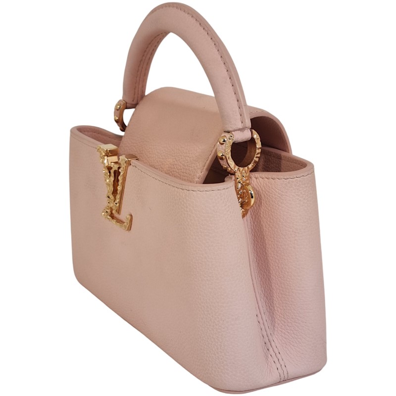 Discover the elegance of the Louis Vuitton Capucines East-West Mini in a delightful Jasmine Pink.