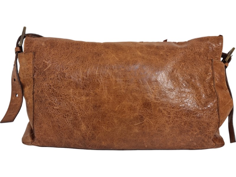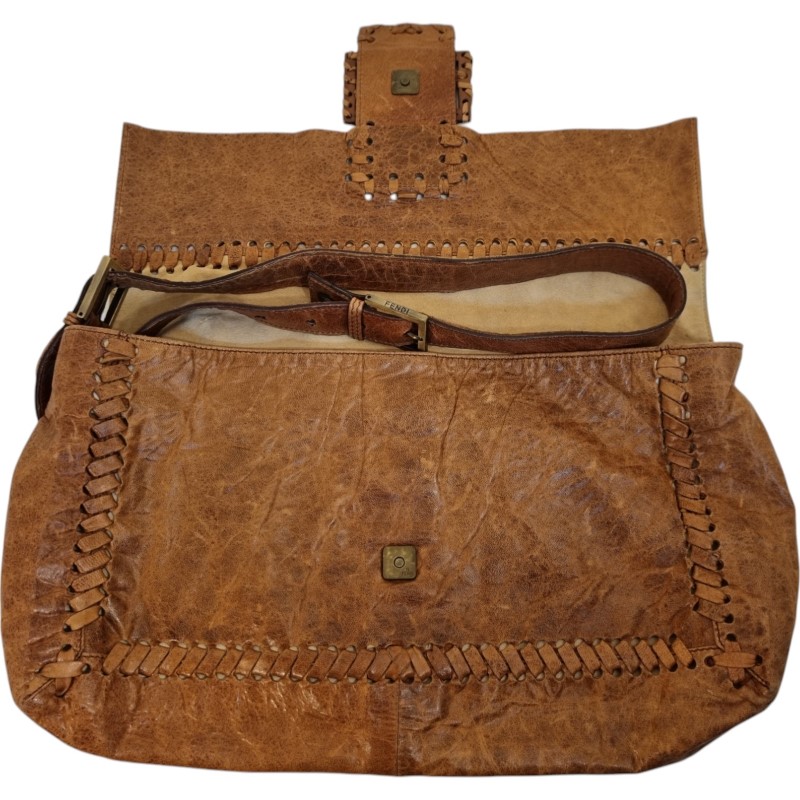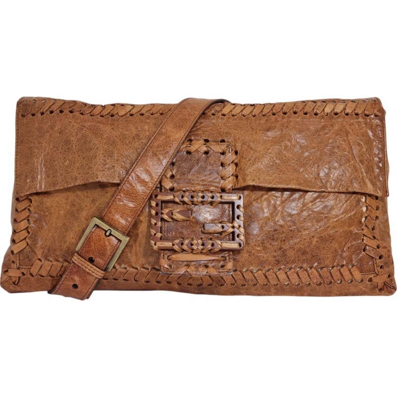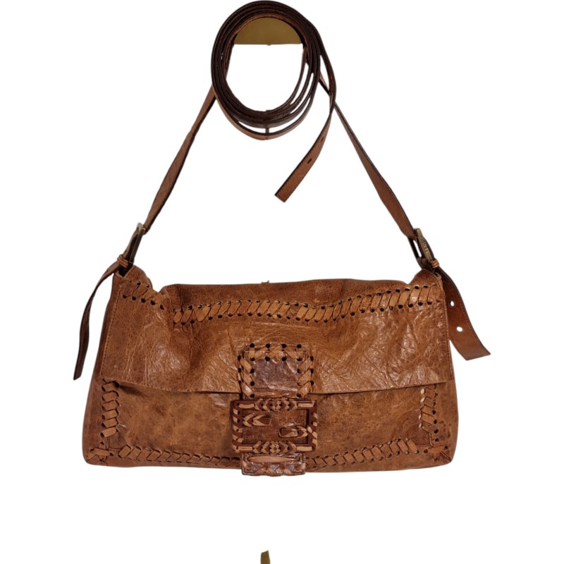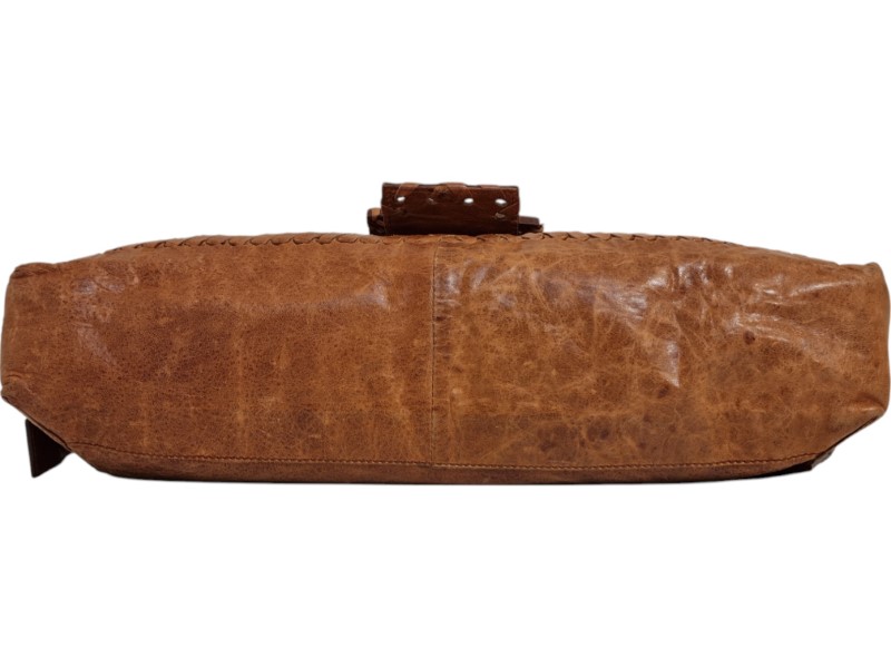 Model Name: Brown Whipstitch Leather Baguette Fap Shoulder Bag