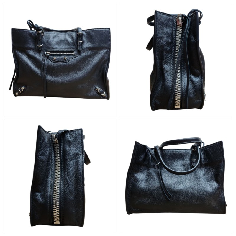 This chic Balenciaga Papier A6 with Mirror handbag is a stylish accessory that will elevate any outfit. Crafted from premium leather, it features a sleek and minimalist design with a convenient mirror for on-the-go touch-ups. The spacious interior provides ample room for your daily essentials, making it a practical and versatile choice.