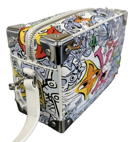 With its unique blend of Louis Vuitton’s classic monogram and vibrant comic-inspired graffiti, this mini trunk bag is perfect for the fashionista who loves to stand out. It’s the bag that screams "fun" while still keeping things chic and luxurious. Whether you're out for brunch, hitting the latest fashion event, or just adding some edge to your everyday look, this bag is the ultimate accessory.