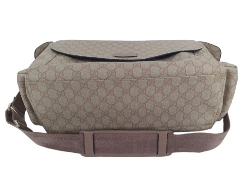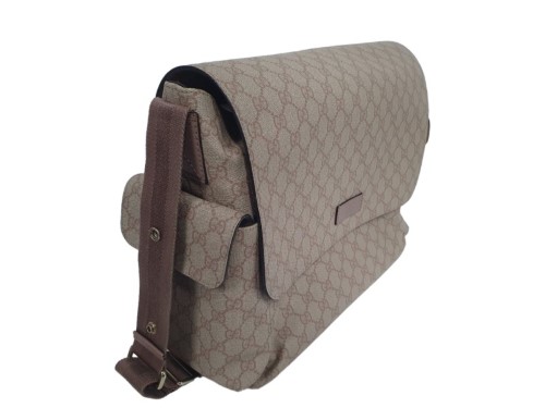 Designed with organization in mind, the GG Supreme Baby Changing Bag features multiple pockets to store diapers, wipes, bottles, and other baby essentials. It also includes a removable changing mat for convenience, ensuring that you can easily care for your baby wherever you are. The adjustable shoulder strap provides comfort for hands-free carrying, while the leather trim adds an elegant touch. Whether you're out for a stroll or traveling, this bag lets you combine luxury with practicality. Ready to travel in style while keeping everything you need at hand? The Gucci GG Supreme Baby Changing Bag is your perfect blend of fashion and function.