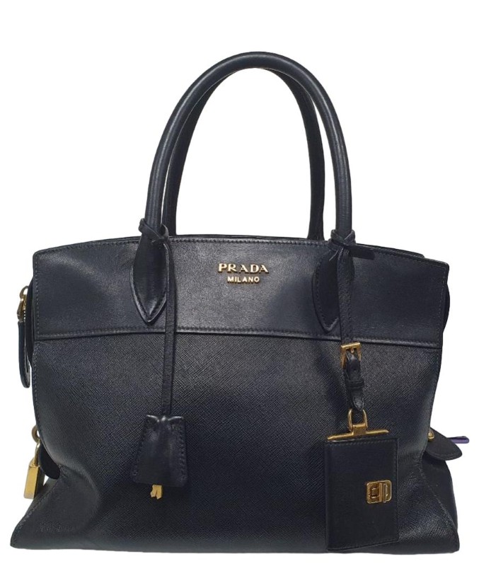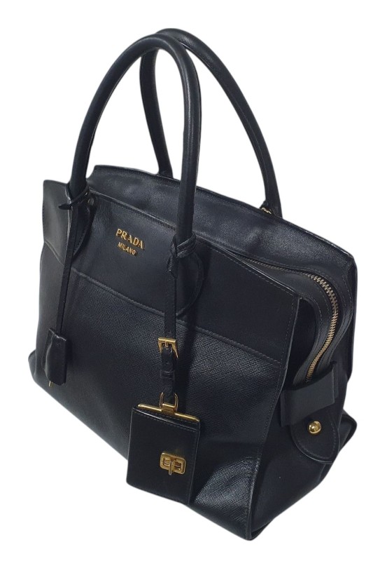 This elegant Prada Saffiano City Calf Esplanade handbag is a sophisticated and timeless accessory. Crafted from durable saffiano leather, it features a structured silhouette and a detachable strap for versatile wear. The refined design and high-quality construction make this bag a stylish and practical choice for the modern woman.