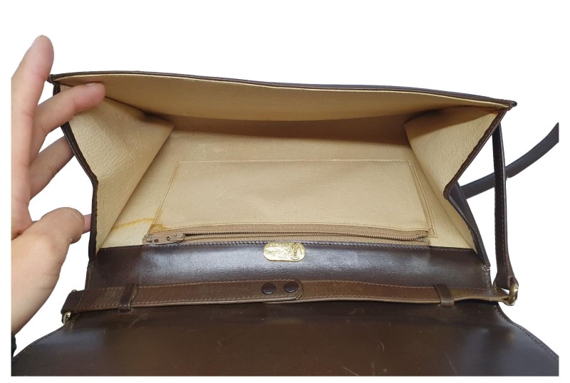 Condition: This item is in used condition, showing signs of previous use, visible scratches all over the bag, discolored metal accents, stained lining, leather has no other wear or damage, overall good condition,