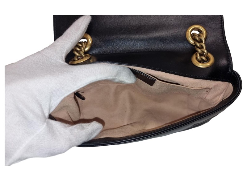 Condition: This item is in good condition showing light wear on the gucci logo hard wear and chain. Leather outer is in good condition only showing very minimal scuffs at the corners of the base. A few marks on the inner flap of the bag but nothing major and no major stains to the inner lining.