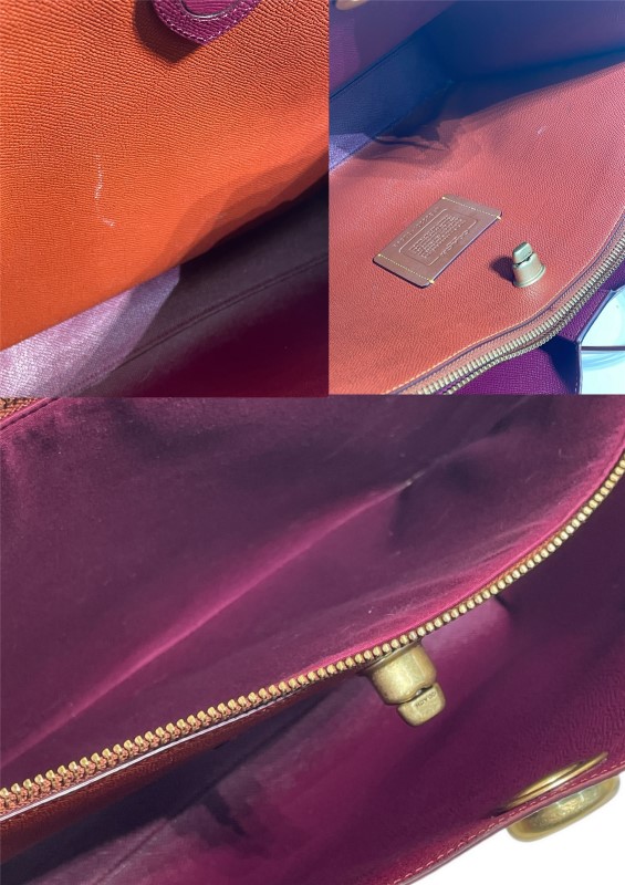 Good used condition with minimal wear across outer parts of bag, straps have no heavy wear, inside has a few white marks on leather.