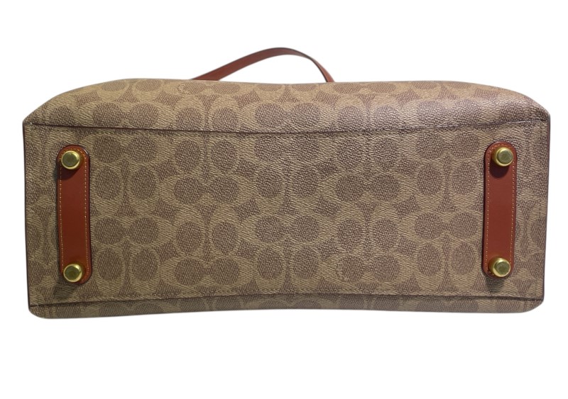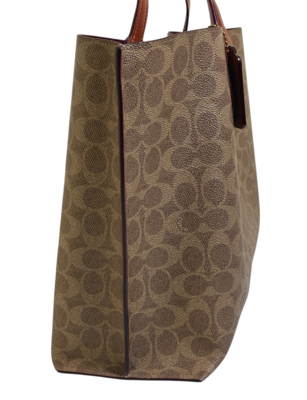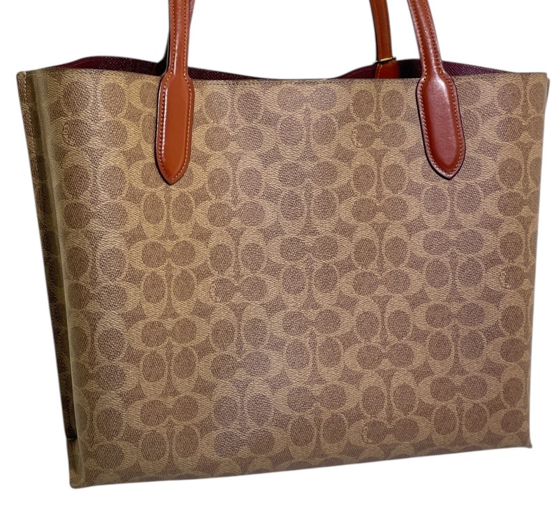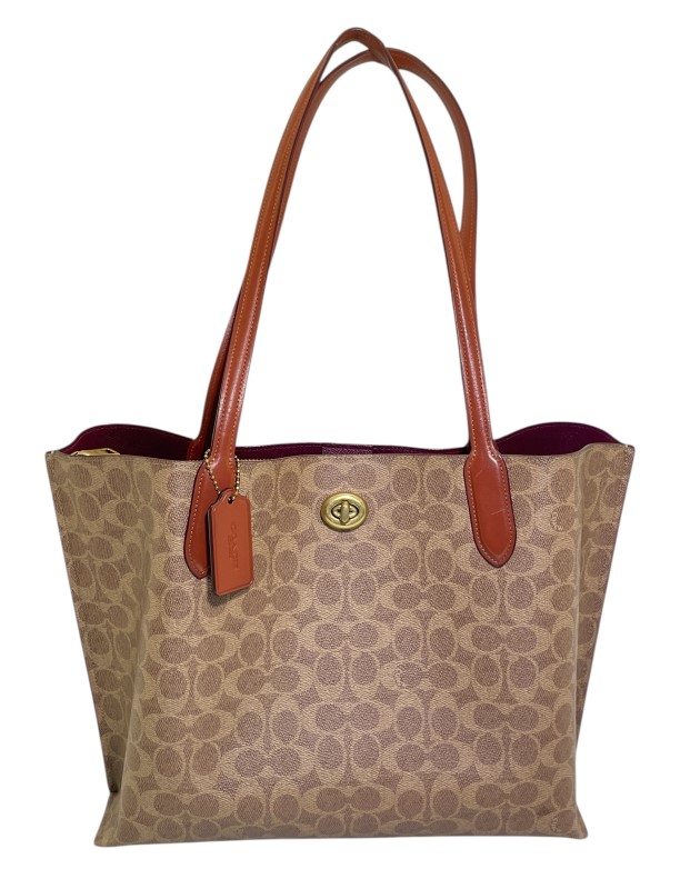 This classic Coach Willow Tote is a versatile accessory that effortlessly blends style and function. Crafted from the brand's signature canvas, it features a spacious interior and comfortable leather straps, making it an ideal companion for everyday use. Despite some minor signs of wear, this pre-owned tote remains in good condition, retaining its timeless appeal.