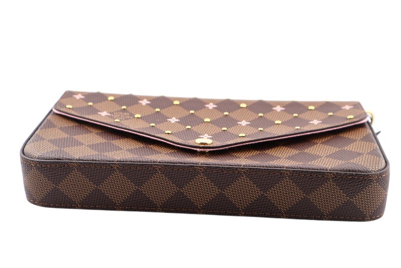 This stunning Louis Vuitton Pochette Felicie with Studden Flowers is a versatile and fashionable accessory. Crafted with the brand's iconic monogram canvas, it features a chic studded flower design that adds a touch of elegance. The bag includes a removable chain strap, allowing you to wear it as a crossbody or clutch.