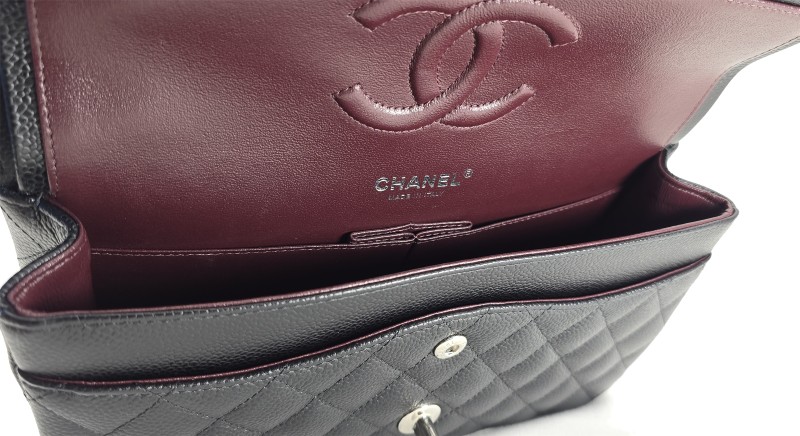 The Chanel Medium Classic Flap in caviar leather with a burgundy interior is a timeless handbag that not only holds its value but truly gets better with age, thanks to the durability and long-lasting structure of its caviar leather.