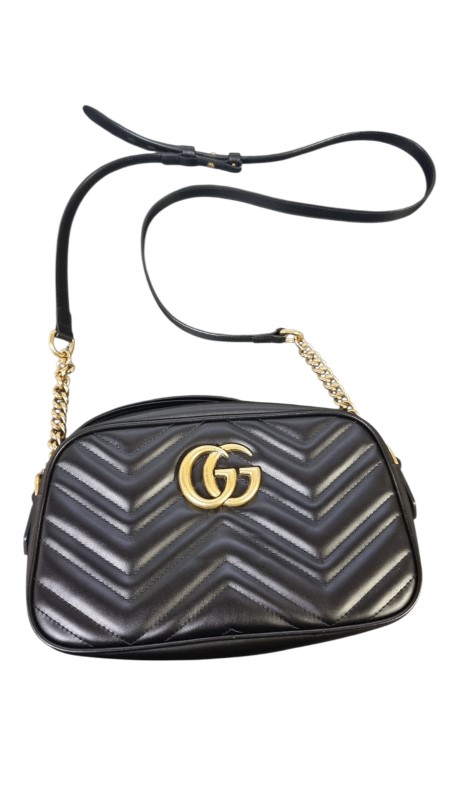 This stunning GUCCI Marmont handbag is a must-have accessory for the fashion-forward woman. Crafted with the brand's signature style, it features a sleek and sophisticated design that effortlessly complements any outfit. The structured silhouette and adjustable strap provide both form and function, making it a versatile choice for daily use or special occasions. With its timeless appeal and exceptional quality, this bag is sure to elevate your look and become a cherished addition to your wardrobe.