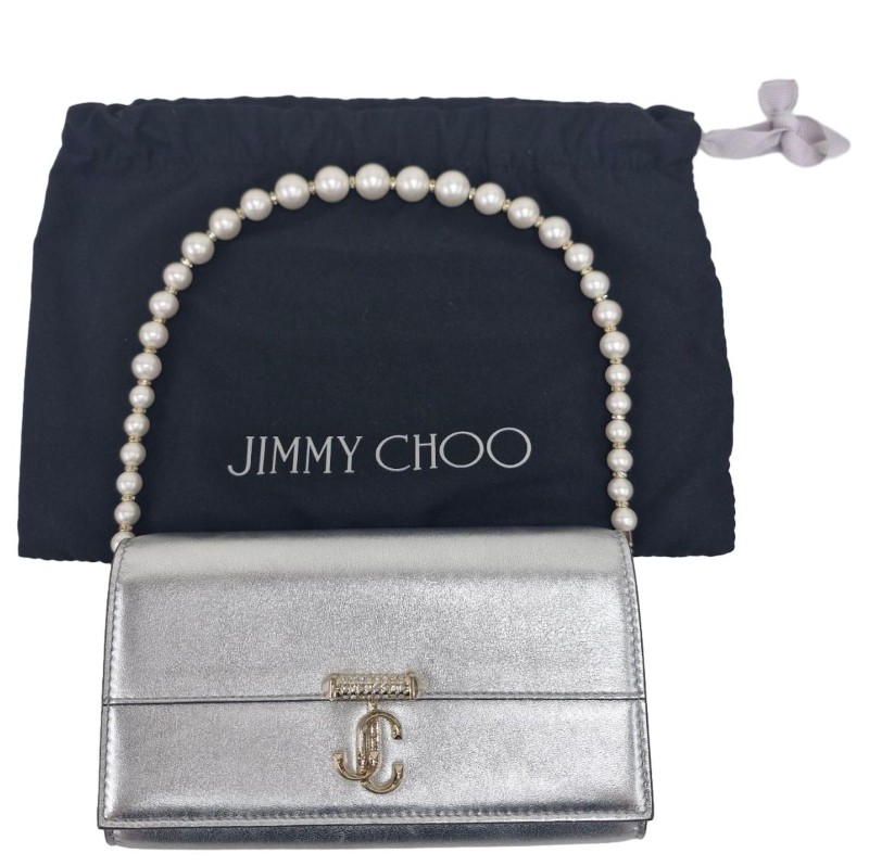This exquisite JIMMY CHO VARENNE WALLET/CHAINBAG PEARL is a versatile and stylish accessory perfect for the modern woman. Crafted with exceptional attention to detail, this bag features a sleek design that seamlessly transitions from day to night. Its compact size makes it ideal for carrying essentials, while the detachable chain strap allows for hands-free convenience. With its timeless aesthetic, this piece will elevate any outfit and complement a variety of personal styles.