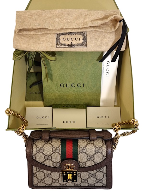 Embrace the elegance of Gucci's iconic Ophidia collection with this chic mini shoulder bag. Showcasing the House's storied GG Supreme canvas, this piece nods to an archival design from the 1930s, now rendered in a sophisticated beige and white combination for a fresh yet timeless appeal.