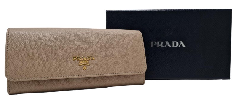 Prada Beige/Bicolour Saffiano Lux Leather Flap Continental Wallet