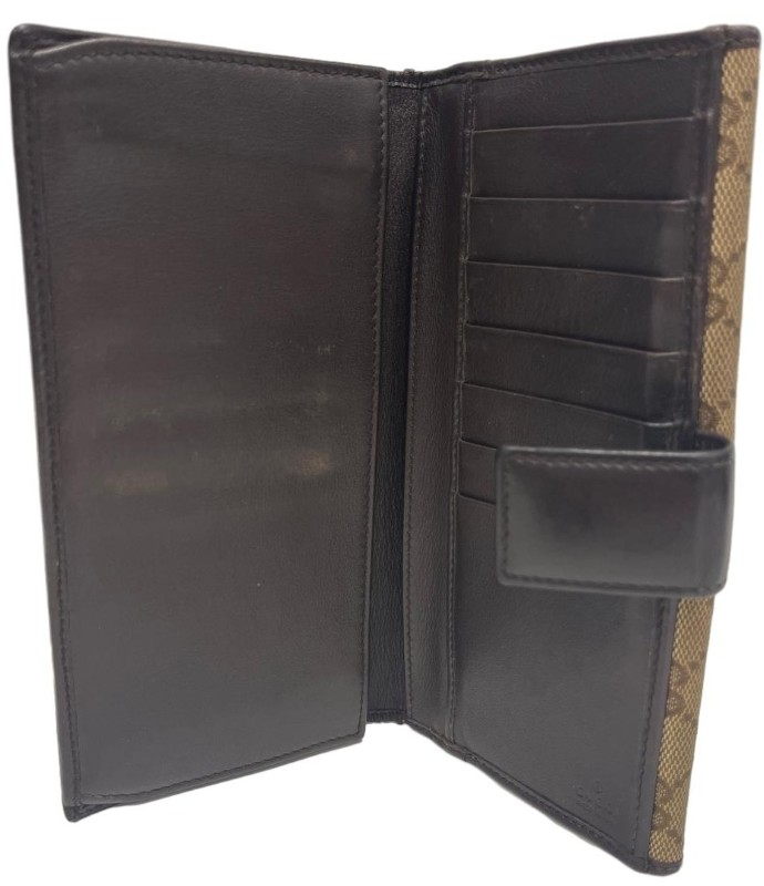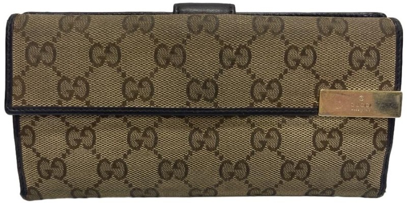 Model Name: Beige/Brown Gg Canvas And Leather Metal Flap Continental Wallet