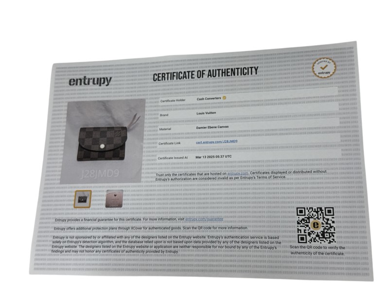 AUTHENTICATION CERTIFICATE VERIFIED BY ENTRUPY