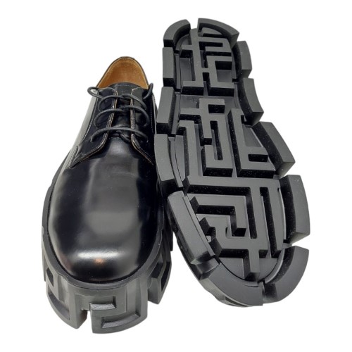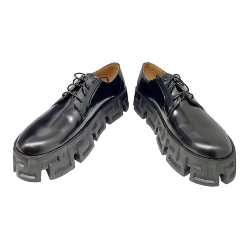 Elevate your style with these iconic Versace Greca Labrynth shoes. Crafted with the brand's signature Greca pattern, these fashionable shoes exude a sophisticated and contemporary aesthetic. Designed for the modern man, they offer a comfortable and durable wear.