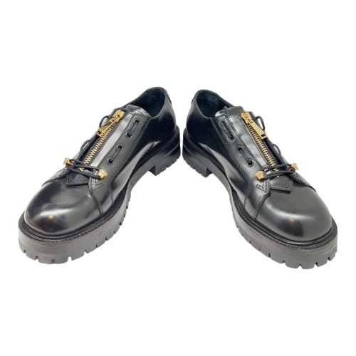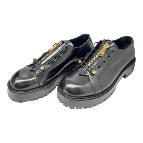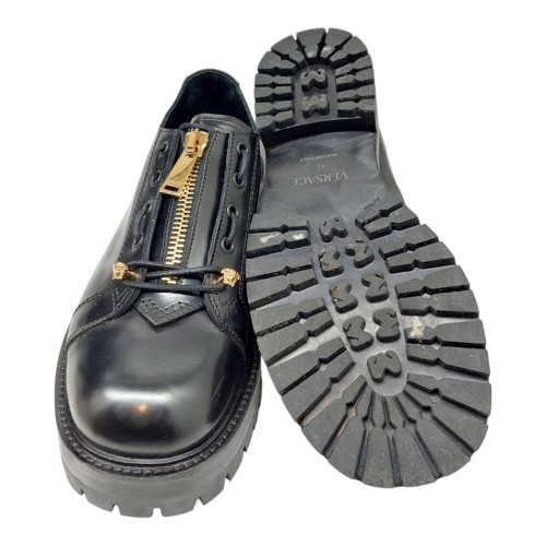 Stylish and versatile, these Versace centre zip derby shoes are a must-have addition to any fashion-forward wardrobe. Crafted with attention to detail, these shoes feature a sleek silhouette and a convenient zip closure for easy on and off. Whether dressing up or down, these shoes will complement a variety of looks with their timeless appeal.