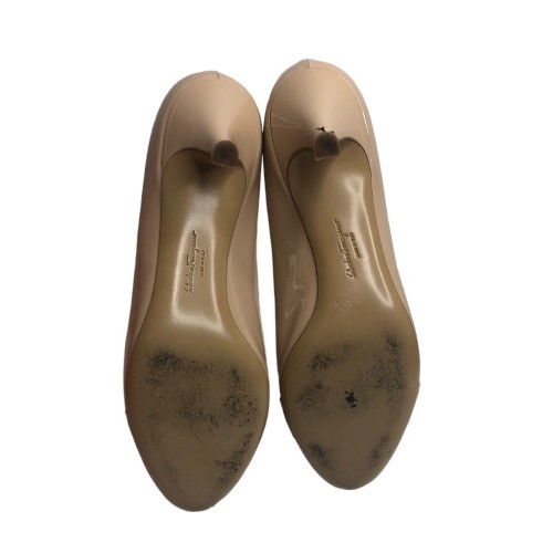SALVATORE FERRAGAMO Beige Patent Leather Emy Bow Pointed Toe Pumps