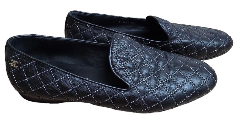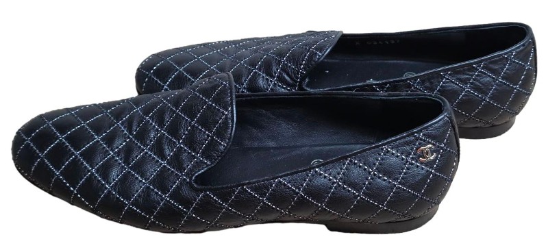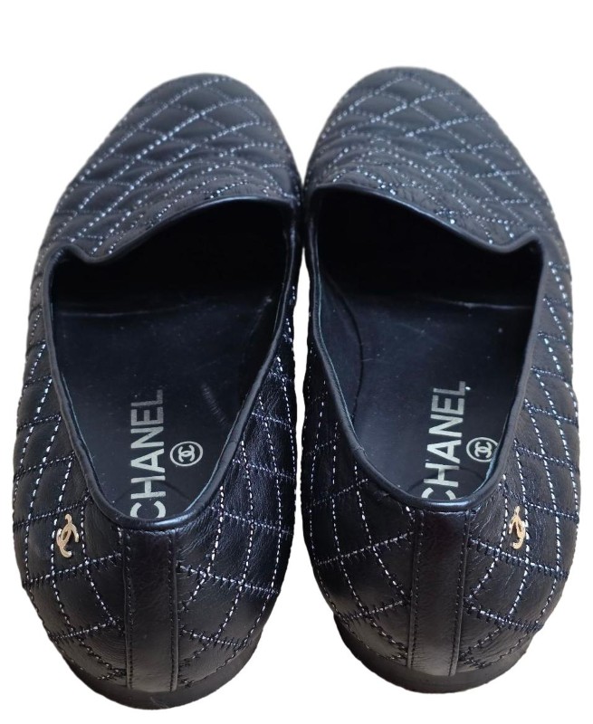 Elevate your style with these timeless Chanel Calfskin Loafers in size 39C. Crafted from premium calfskin, these shoes offer a sleek and sophisticated look that can seamlessly transition from the office to a night out. With their classic loafer silhouette, they provide both comfort and elegance, making them a versatile addition to your wardrobe.