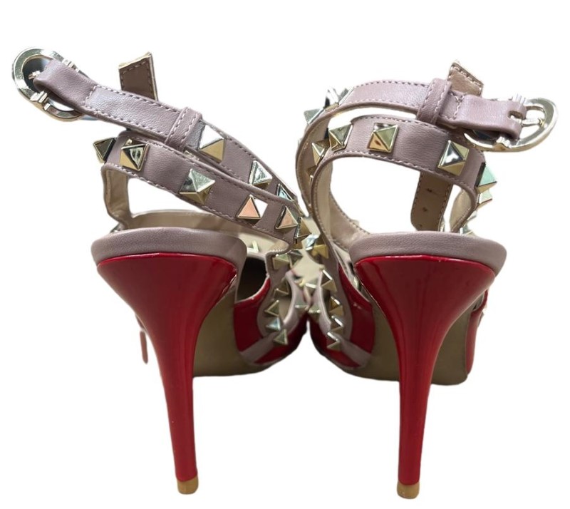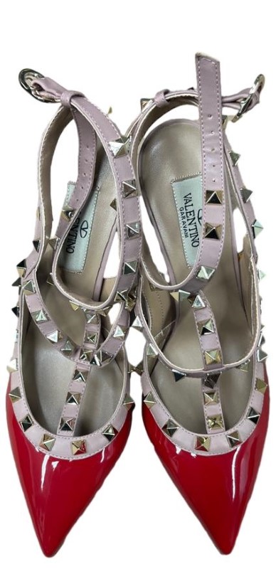 Model Name: Rockstud Pointed Toe T-Strap Pump (Size 37)