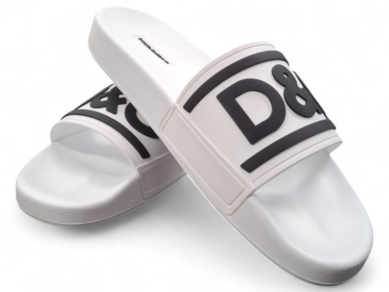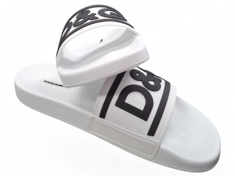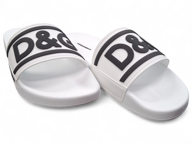 These stylish Dolce & Gabbana rubber beachwear sliders feature the iconic DG logo, making them a must-have accessory for the fashion-forward man. Crafted with quality materials, these slides offer both comfort and style, perfect for the beach, pool, or casual summer outings. With a sleek and modern design, they'll complement a variety of casual looks with ease.