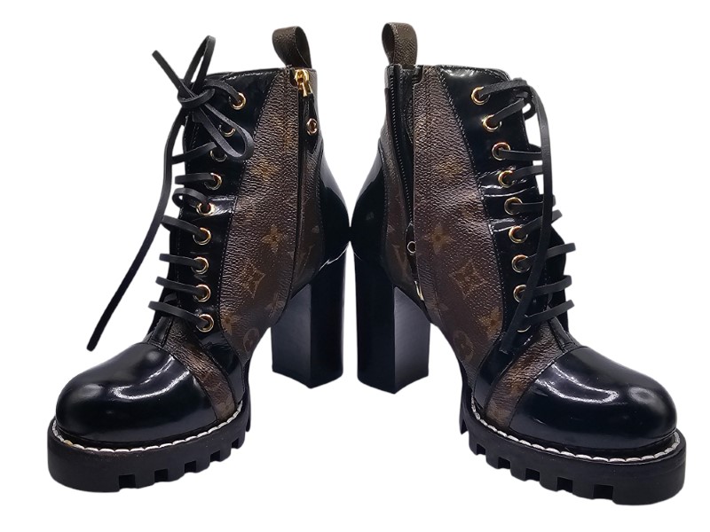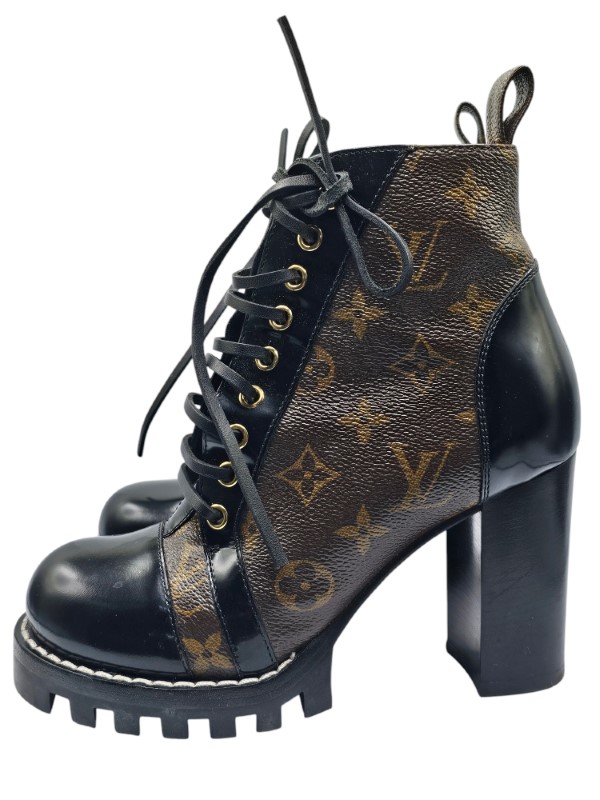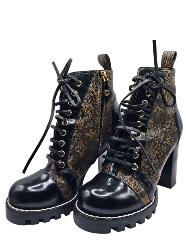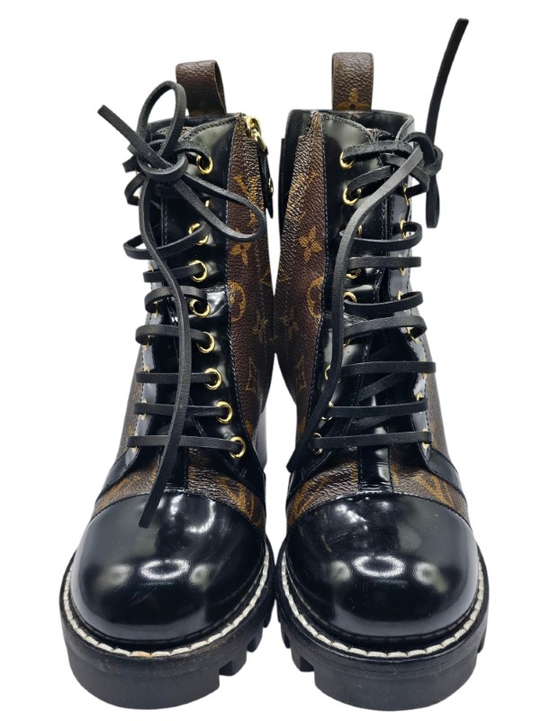 Whether you're strolling through the city or elevating your night-out look, the Star Trail Ankle Boots will give you that instant edge. The sturdy, chunky sole provides excellent support, ensuring that you’re not only stylish but also comfortable all day (or night) long. Ready to walk confidently in style? These Louis Vuitton boots are your ticket to bold, unforgettable fashion!