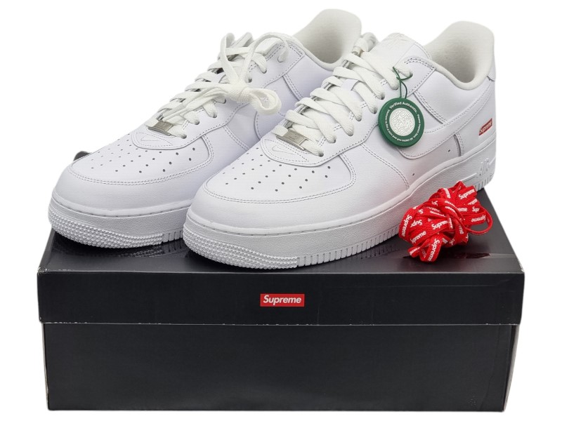 The Nike Air Force 1 Low Supreme White is a minimalist yet highly sought-after sneaker that combines the timeless appeal of the Air Force 1 with Supreme's streetwear legacy. Here's a detailed overview: