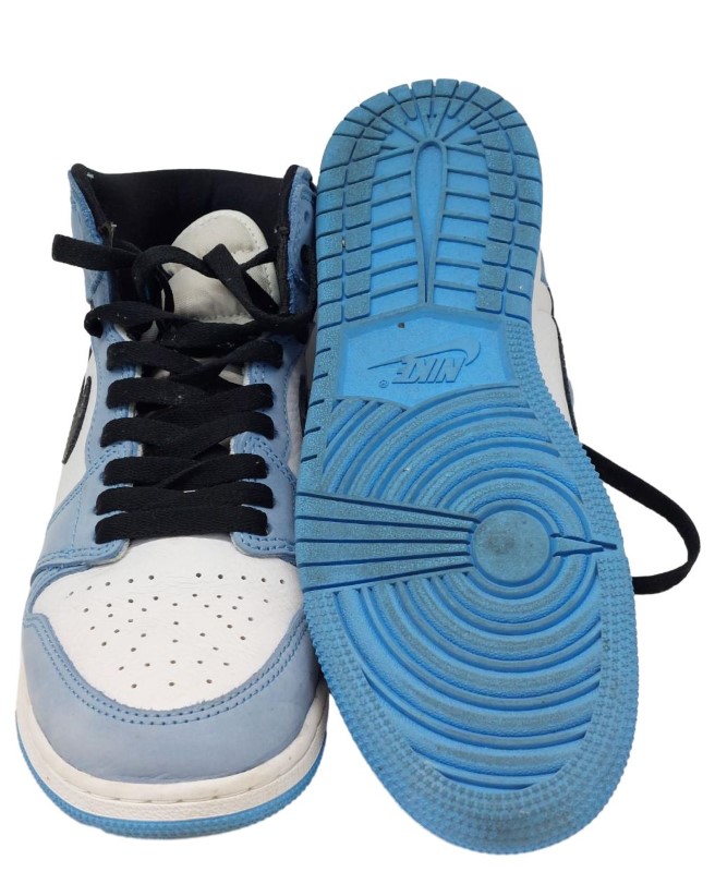 These iconic NIKE AIR JORDAN 1 HIGH UNIVERSITY BLUE sneakers are a stylish and versatile addition to any wardrobe. Crafted with premium materials, they feature the classic Air Jordan 1 silhouette in a striking University Blue colourway. The high-top design provides excellent ankle support, while the Air-cushioned sole delivers all-day comfort. Whether you're dressing up or down, these sneakers will elevate your look with their timeless appeal.