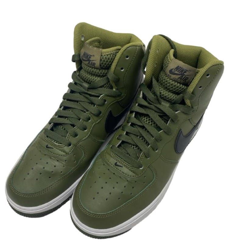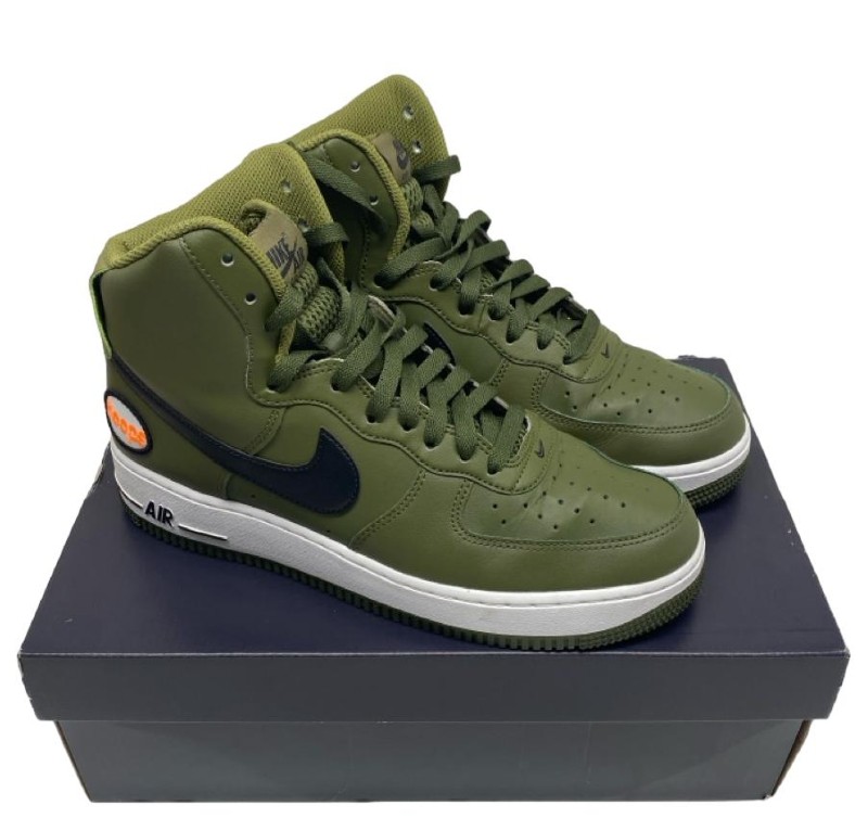 This pair of Nike Air Force 1 High '07 LV8 sneakers in the classic green colourway is in near new condition. Crafted with a durable leather upper and featuring the iconic Air Force 1 silhouette, these shoes offer exceptional comfort and style. The high-top design provides additional ankle support, while the textured sole delivers reliable traction. Whether you're running errands or making a fashion statement, these versatile sneakers are a must-have addition to any wardrobe.