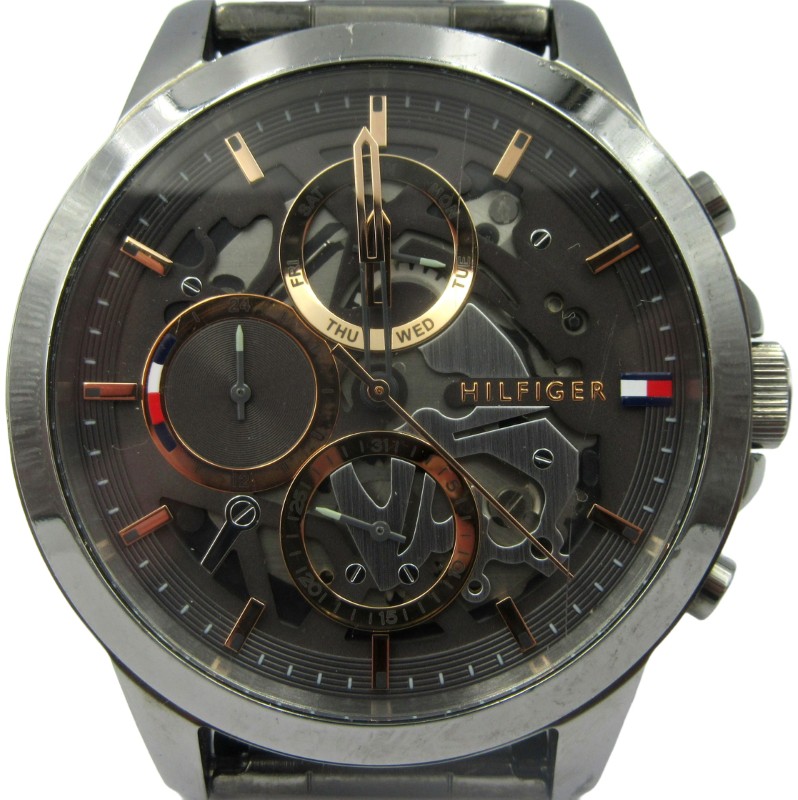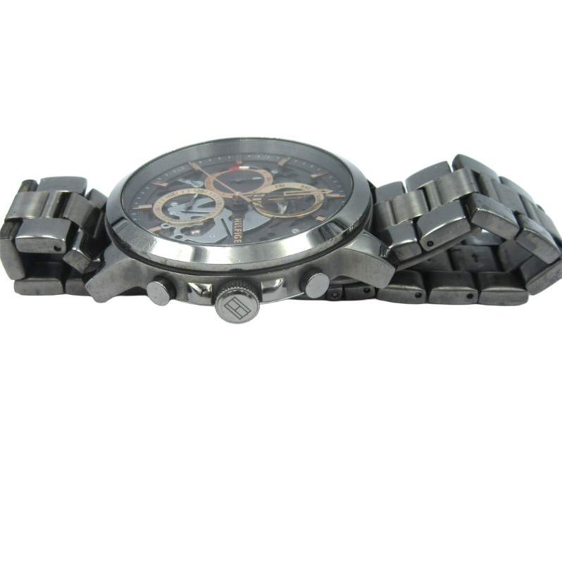 This stylish TOMMY HILFIGER dress watch features a sleek black metal face and band, with a classic circular design. Crafted from durable metal, this timepiece offers a sophisticated look that can be dressed up or down. The minimalist face showcases the brand's iconic logo, providing a subtle touch of luxury. With a weight of 122.48 grams, this watch offers a substantial yet comfortable feel on the wrist.