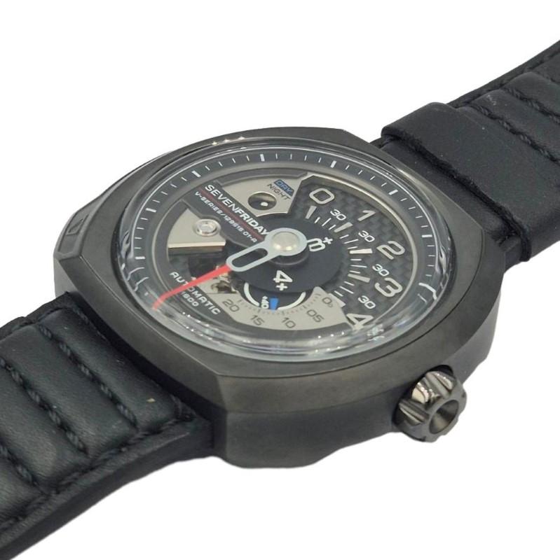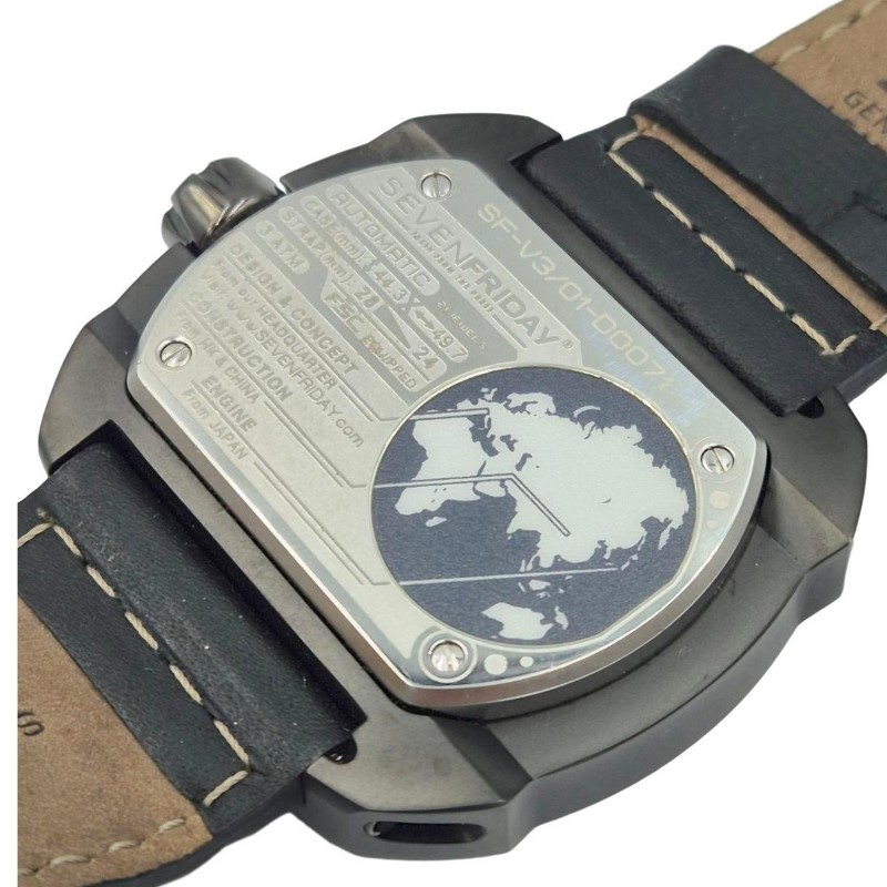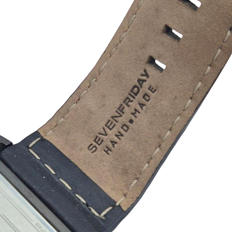 This SEVENFRIDAY SF-V3/01-D0071 dress watch features a sleek and sophisticated design that is perfect for any occasion. The black leather band complements the circular black and grey face, which displays the time in a clean and easy-to-read numerical format. Crafted with attention to detail, this timepiece is a versatile accessory that can elevate any outfit. In clean condition, and a bargain for any watch enthusiast.