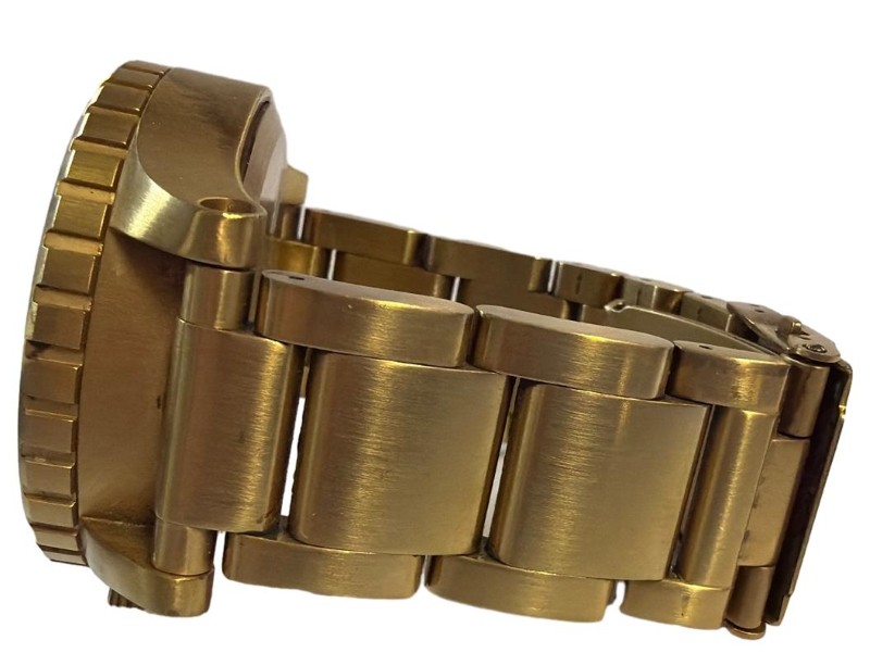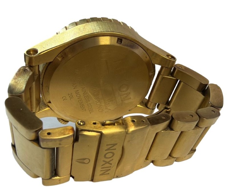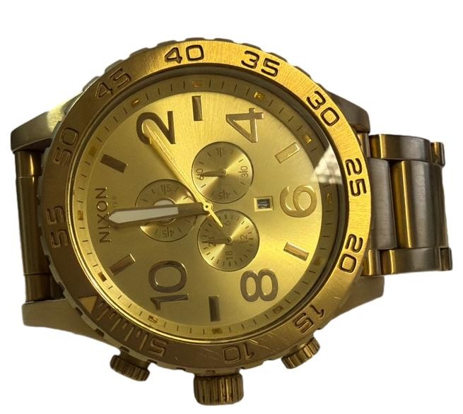 This well-crafted NIXON THE 51-30 CHRONO SIMPLIFY men's wrist watch features a stylish gold-tone stainless steel band and a sleek gold-tone face with a classic circular design. The durable glass face displays dashes and numbers, offering a clean, minimalist aesthetic. With its robust construction and timeless appeal, this timepiece is a versatile accessory suitable for both casual and formal occasions.