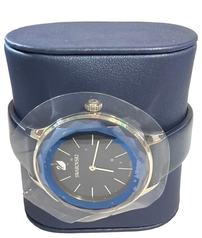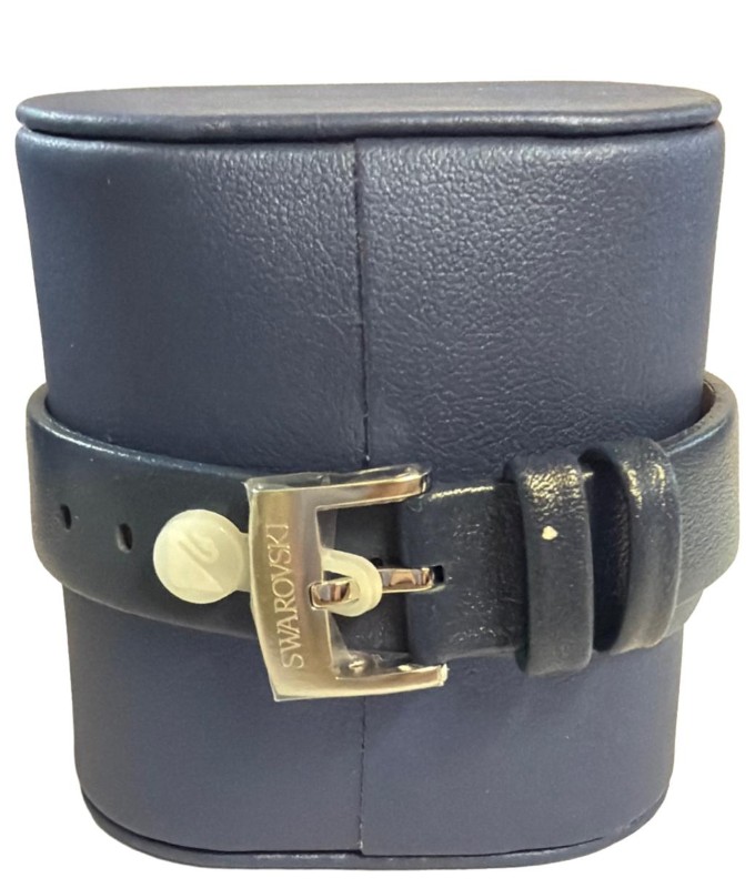This elegant SWAROVSKI ladies' dress watch features a classic blue leather band that complements the simple yet sophisticated numbered face display. Crafted with attention to detail, this timepiece is a timeless accessory that can seamlessly transition from day to night. The durable leather construction ensures long-lasting wear, while the minimalist design lends a touch of refinement to any outfit.