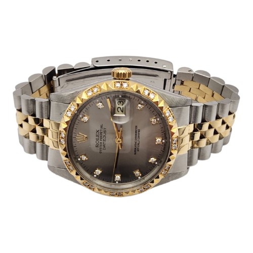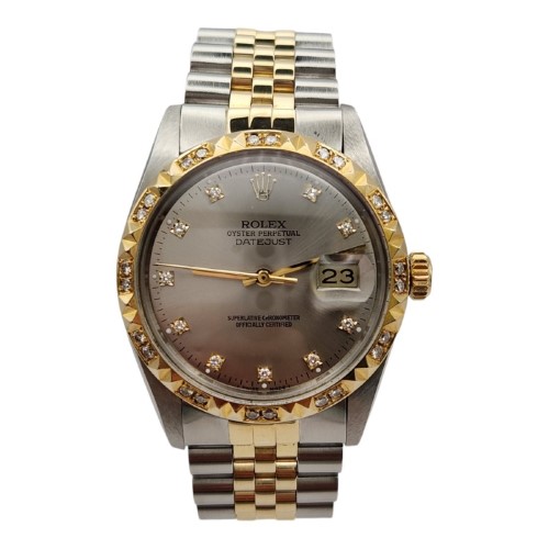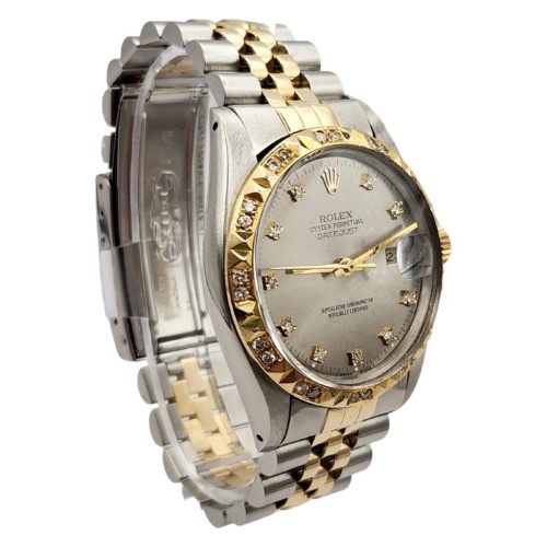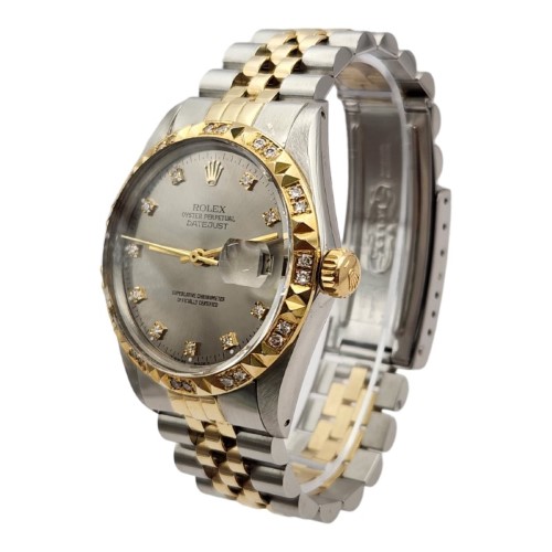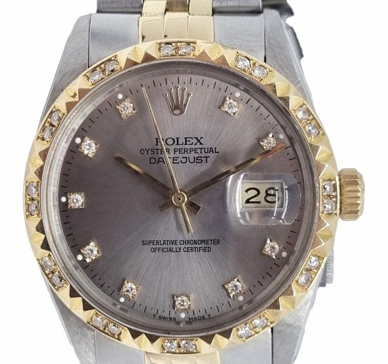 This Rolex watch (reference number 16013, circa 1984) is crafted with meticulous attention to detail. The diamond-set bezel, although not an original Rolex factory manufacture, adds a unique charm and enhances the overall allure of the watch.