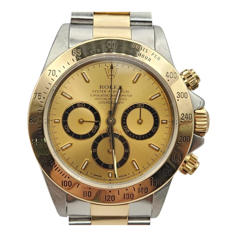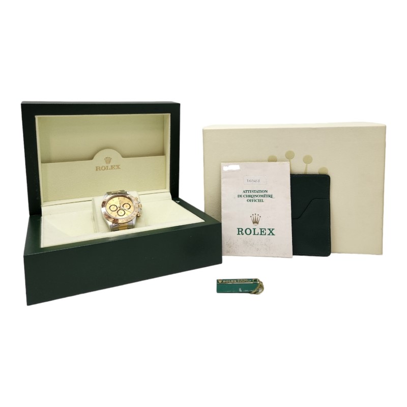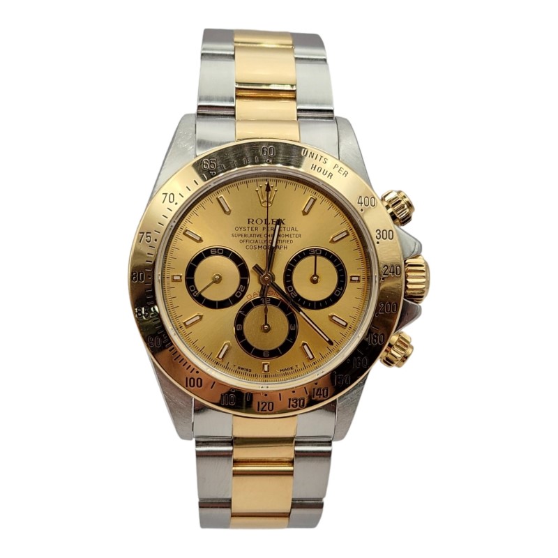 This exquisite ROLEX 16523 Daytona watch is a true testament to the brand's timeless elegance and exceptional craftsmanship. Featuring a sleek and sophisticated dress watch design, this timepiece boasts a stunning stainless steel case that exudes a timeless appeal. The iconic Daytona name is synonymous with precision and performance, and this pre-owned model upholds that legacy with its reliable automatic movement and precise timekeeping capabilities.