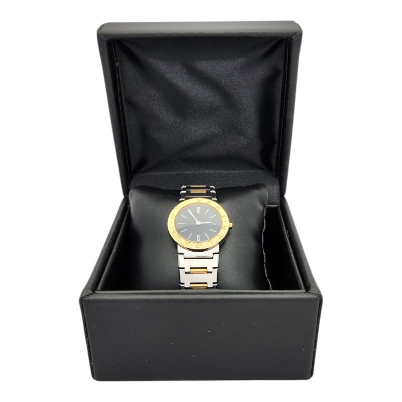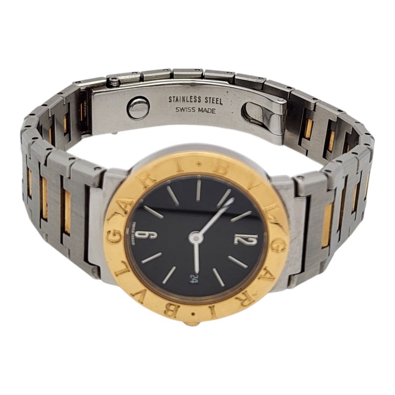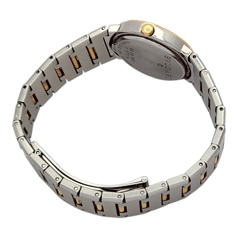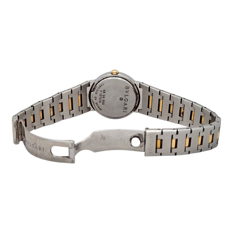 This elegant BVLGARI BB 26 SGD ladies' watch features a sleek silver metal band that complements the sophisticated chronograph design. The high-quality construction ensures a durable and long-lasting timepiece. With its classic aesthetic, this watch effortlessly transitions from day to night, making it a versatile accessory for any occasion.