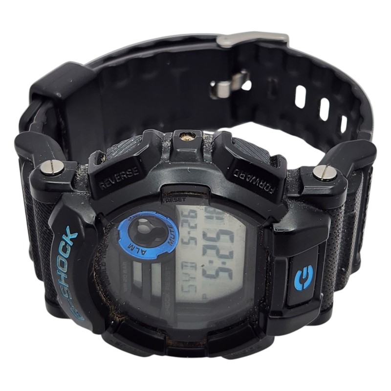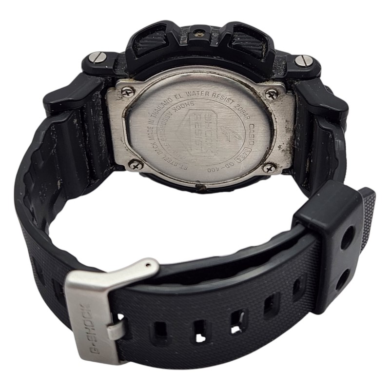 This CASIO g-shock GD-400 sports watch is a pre-owned but well-maintained timepiece that will elevate your active lifestyle. Crafted with a durable resin case and featuring a bold digital display, this watch is built to withstand the rigours of your day-to-day adventures. The shock-resistant construction ensures it can handle the occasional bump or drop, while the water resistance rating of 200 metres allows you to take it swimming or snorkelling without worry. With a range of practical functions, including a stopwatch, timer, and multiple alarms, this versatile sports watch will keep you on track and organised throughout your busy schedule.