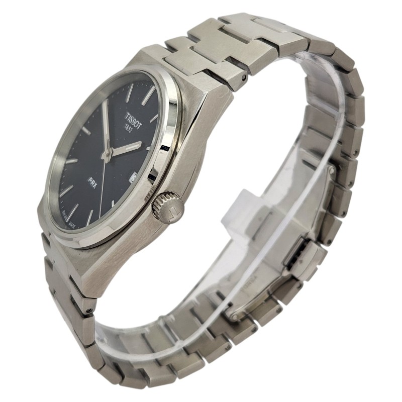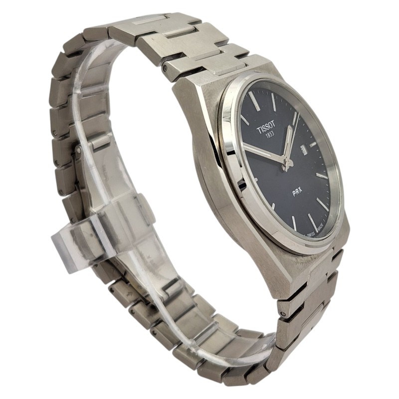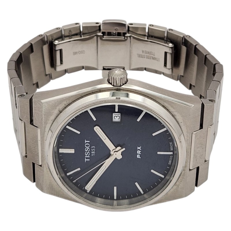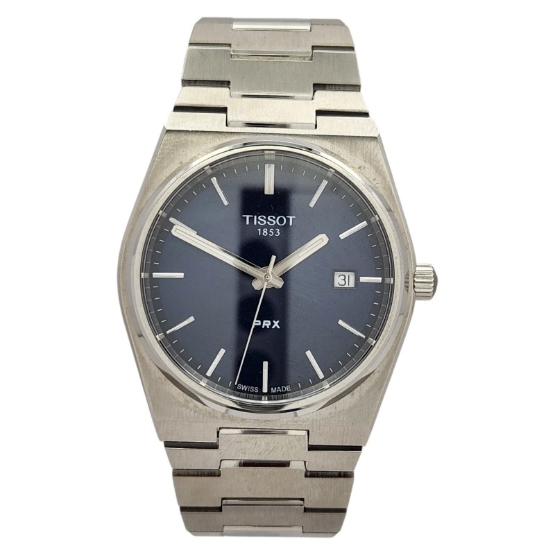This classic TISSOT PRX T137.410.11.041.00 watch features a stunning silver band and a vibrant blue circular face, making it a versatile and stylish accessory for any occasion. The sleek and modern design, combined with the renowned quality of the TISSOT brand, ensures a timepiece that is both visually appealing and built to last.