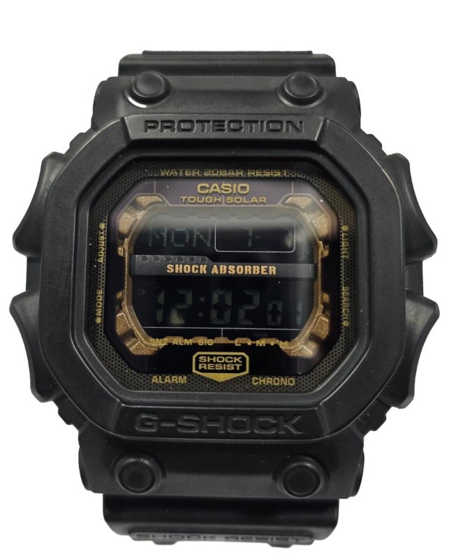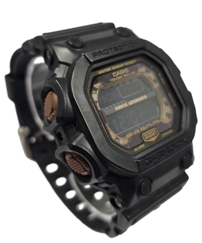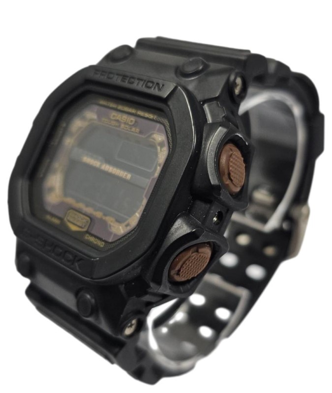 This Casio GX-56RC sports watch features a bold, black rubber band that is both durable and comfortable to wear. With its rugged design, this watch is well-suited for an active lifestyle, making it a practical choice for those who enjoy outdoor activities or need a reliable timepiece for everyday wear. The watch's key features include water resistance, a shock-resistant build, and a range of functional capabilities to help you stay on top of your day.