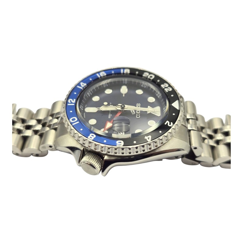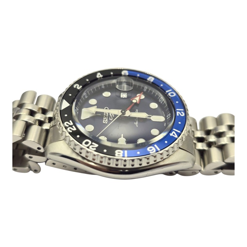 This pre-owned SEIKO SSK003 dress watch features a sleek silver metal band and a striking blue metal face with a classic circular design. The face displays the time in a straightforward numeric format, making it easy to read at a glance. Crafted with attention to detail, this versatile timepiece is well-suited for both formal and casual occasions.