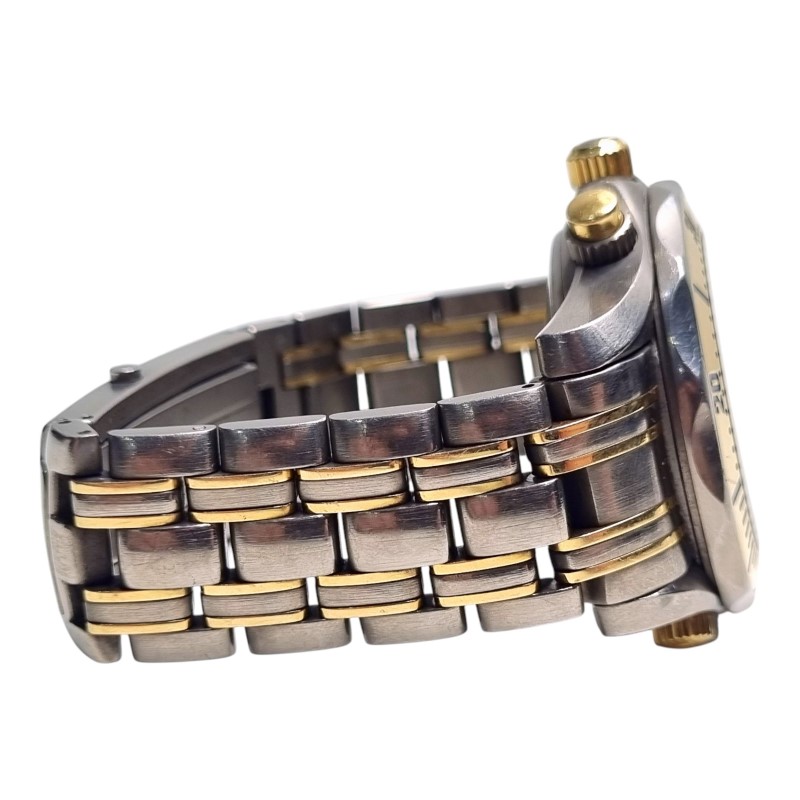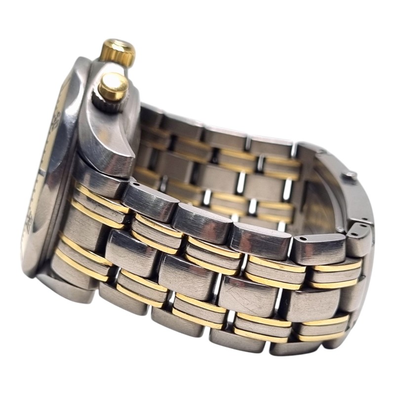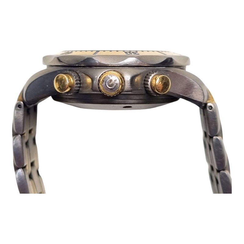 Bezel: The rotating bezel is made of gold-plated stainless steel and features a tachymeter scale for measuring speed.