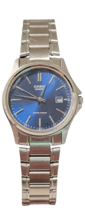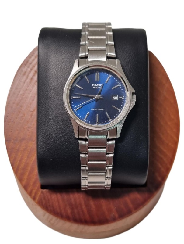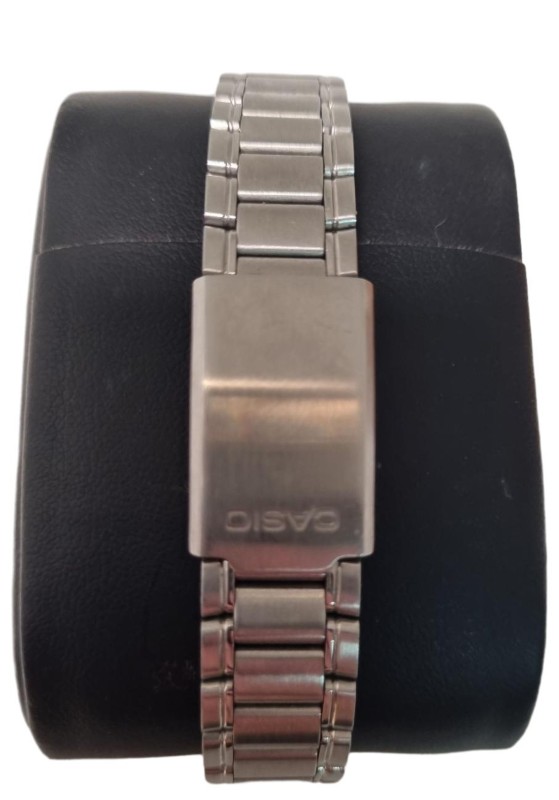 This elegant CASIO LTP-1183 ladies' dress watch features a classic circular face with Roman numeral hour markers. The silver-toned metal band and face provide a timeless and sophisticated look. This secondhand watch is a versatile accessory that can be dressed up or down to suit any occasion.