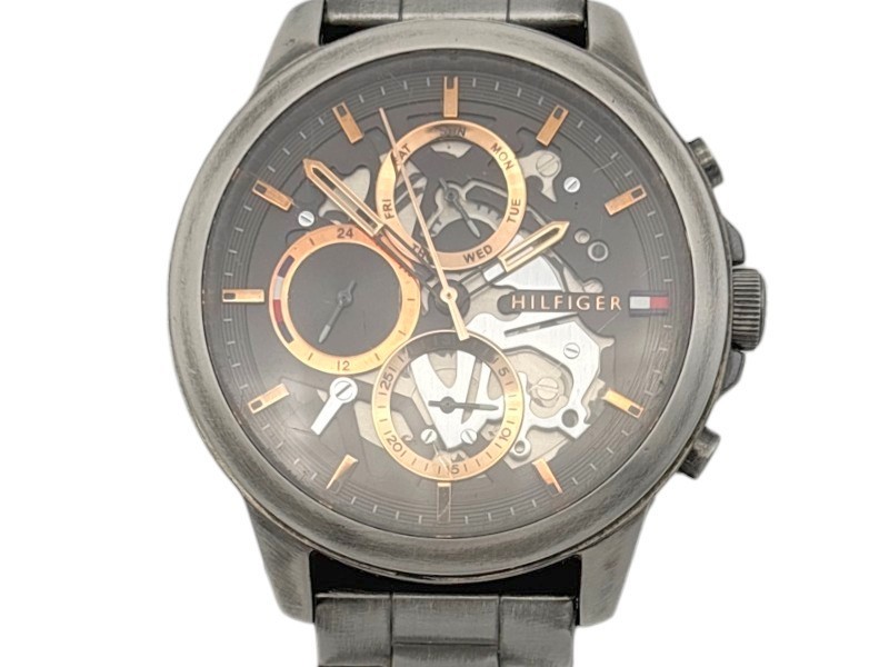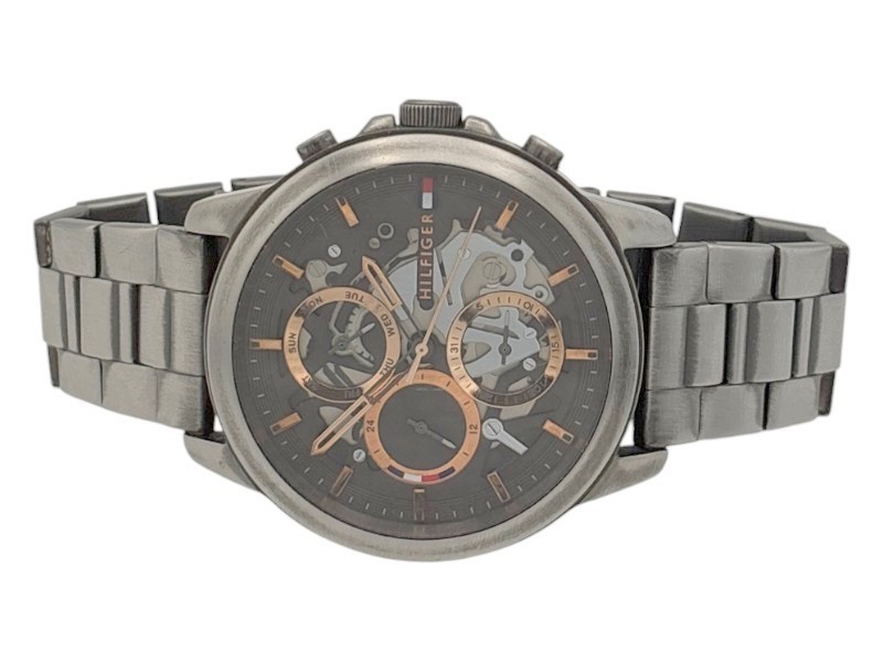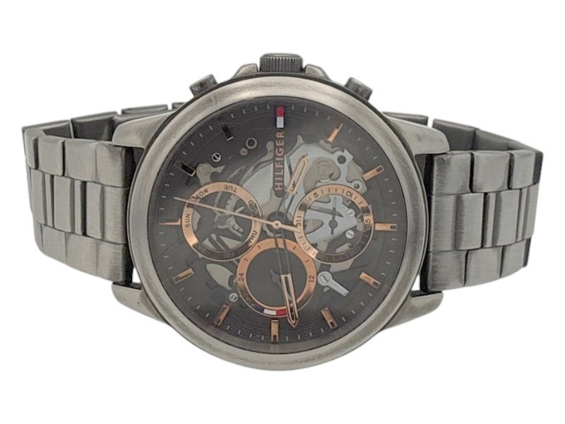 This classic Tommy Hilfiger men's watch features a sleek silver stainless steel band and a stylish grey round face. The robust construction and timeless design make it a versatile accessory for any occasion. The watch will comfortably fit wrists up to 20cm, though no spare links are included.