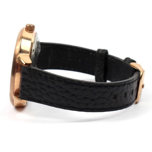 - Black leather band for a classic, comfortable fit.