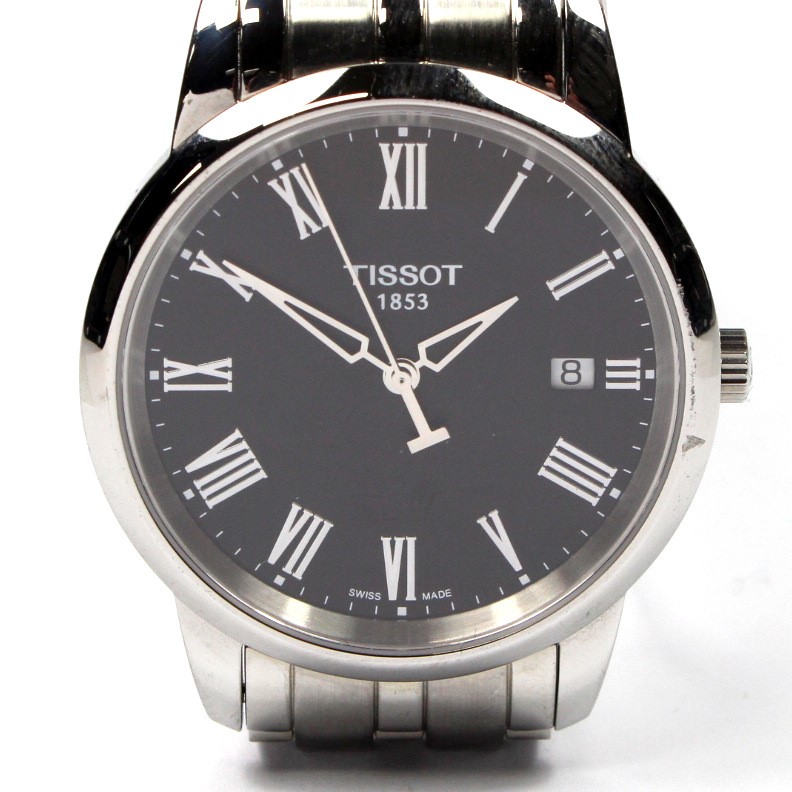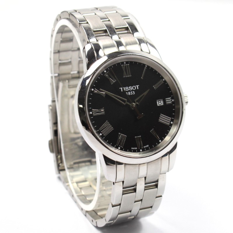 This TISSOT Classic Dream 38mm Men's Quartz watch features a sleek and sophisticated design that exudes timeless elegance. The silver-toned metal band complements the black metal face, creating a classic and versatile look that can be dressed up or down. The circular face displays the time and date, providing the essential functionality you need in a dress watch. Crafted with attention to detail, this timepiece is a reliable and stylish accessory for the modern gentleman.