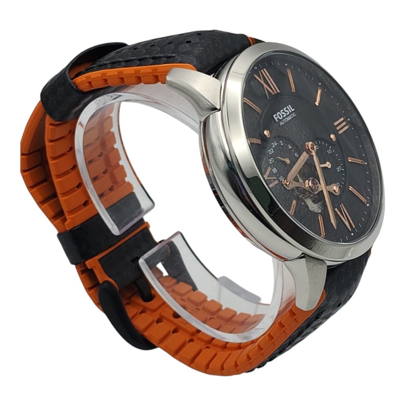 This classic Fossil ME3061 watch features a sleek black rubber band and a circular glass face with a stylish lines display. Crafted with precision, this timepiece boasts a durable design that is perfect for the modern gentleman. The chronograph functionality allows for advanced timekeeping, making it a versatile accessory for both casual and formal occasions.
