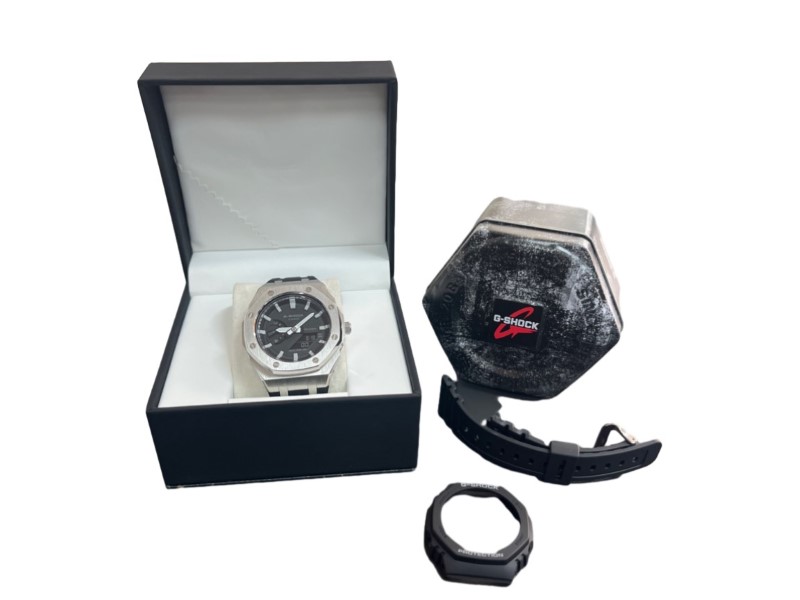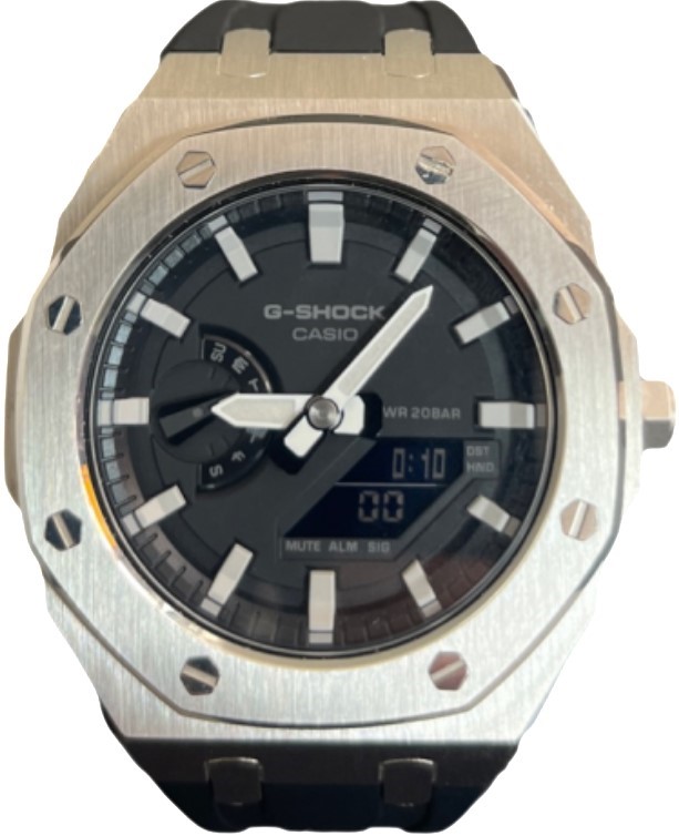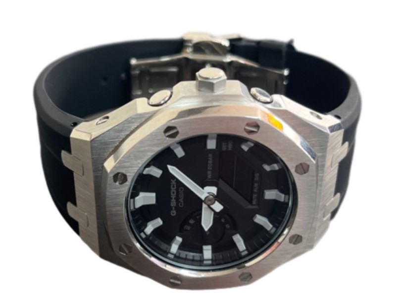 This Casio Casioak 5611 GA-2100 sports watch features a sleek black face with a circular glass display and a durable black rubber band. Designed for active lifestyles, this timepiece offers a reliable and practical solution for those seeking a versatile and stylish accessory. Its lightweight construction and comfortable fit make it an ideal choice for everyday wear or athletic activities.