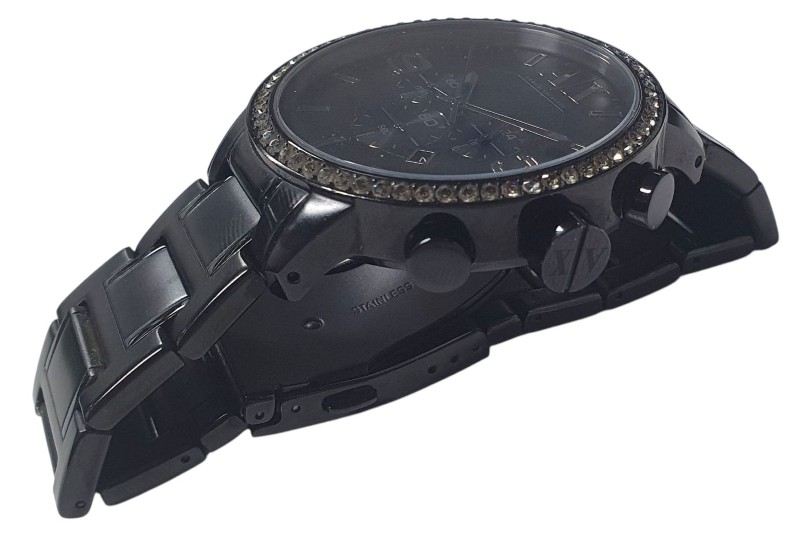 - Black metal face and band for a modern, sophisticated look