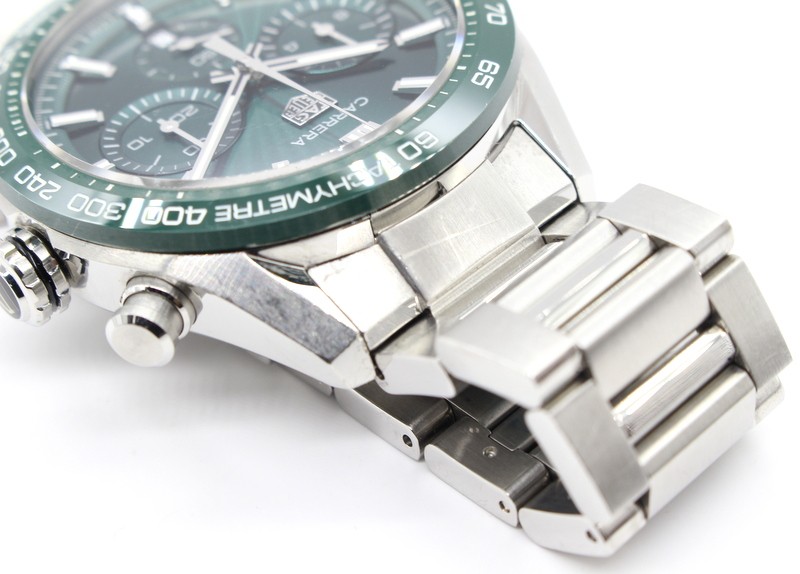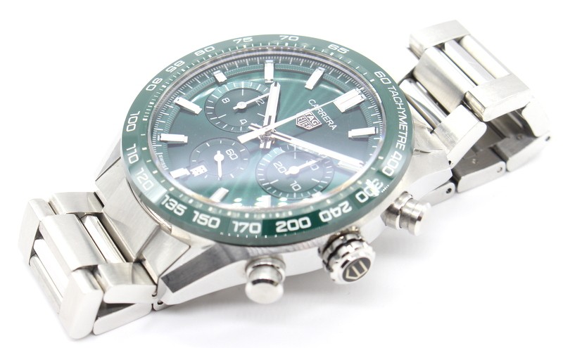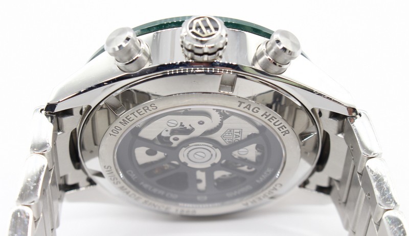 Swiss made Tag Heuer Carrera Chronograph Automatic timepiece.