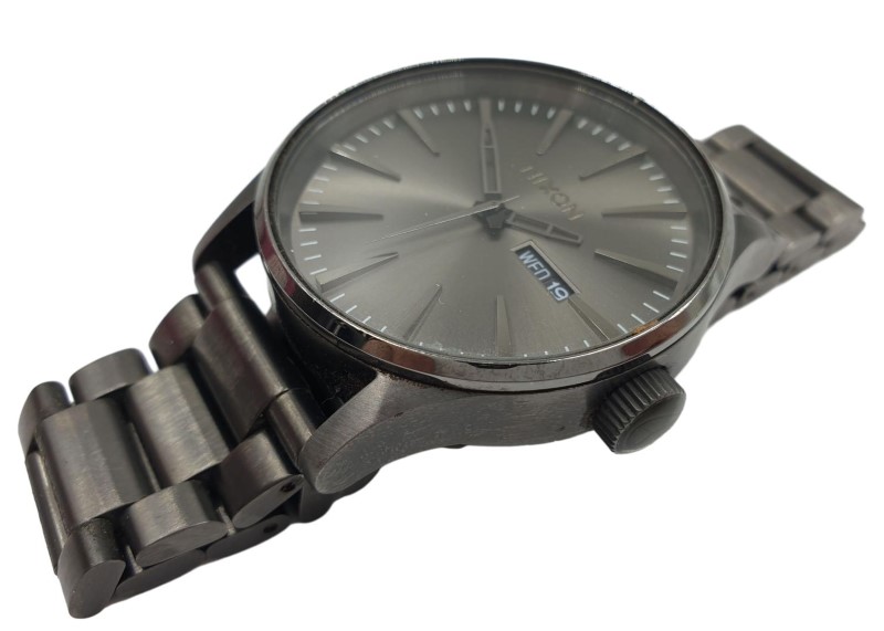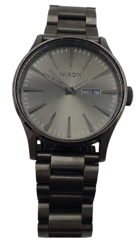 The NIXON THE SENTRY SS is a stylish men's dress watch. Featuring a classic circular face with a silver metal finish and easy-to-read numbered display, this timepiece exudes a sophisticated look. The sturdy metal case is complemented by a sleek black metal band, creating a modern and durable design. This versatile watch is suitable for both casual and formal occasions, making it a reliable accessory for the modern man. With its reliable quartz movement and durable construction, the NIXON THE SENTRY SS is a timeless addition to any wardrobe.
