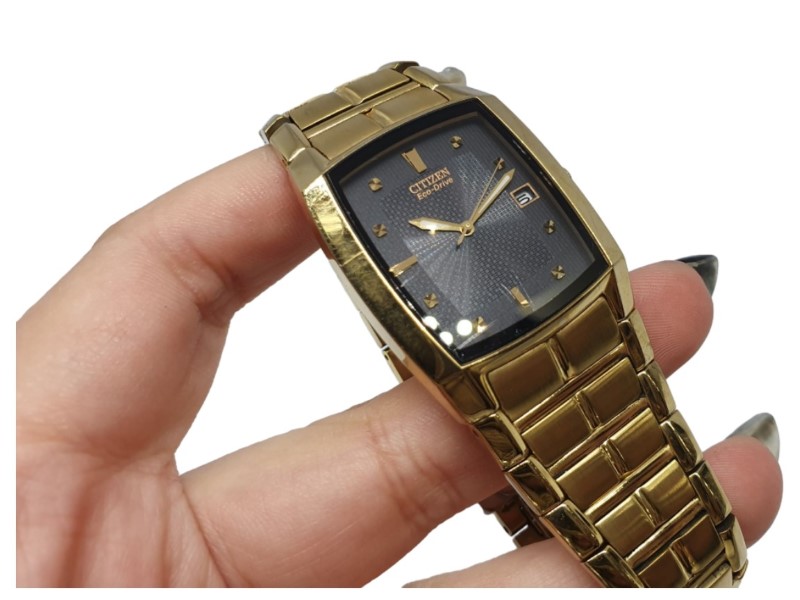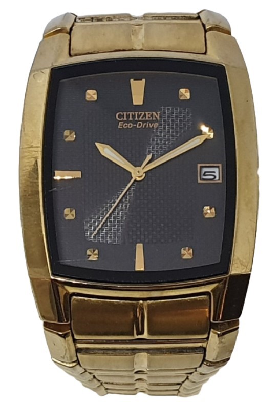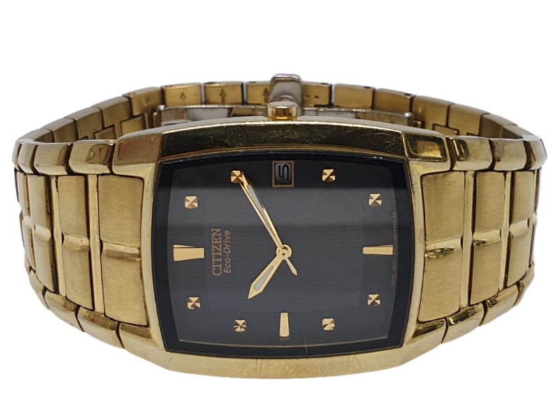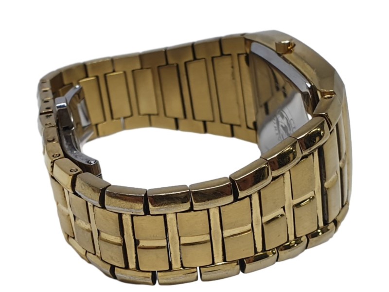 Condition: Watch is in worn condition with visible cosmetic wear. Many small light visible scratches on the watch face which are not extremely noticeable face on but visible from other angles. Band shows discoloration near some links and light scratches throughout.